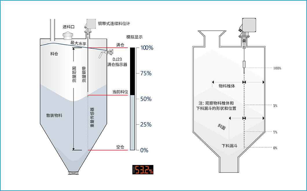 介可视钢带式连续物位计用于筒仓、容器和地堡中可靠地连续测量各种粉尘、粉状、粗粒或细粒散装材料,例如砾石、沙子、水泥、混凝土、石灰、石膏、碎石、动物饲料、鱼粉、牛奶粉末、谷物、香料、盐、糖、面粉、咖啡、可可、谷物、碳、肥料、硫酸锌、氧化铝、聚苯乙烯、塑料颗粒、塑料粉末、填料、木丸、木屑、锯末、泡沫片、灰烬、粉煤灰、炉渣、煤烟、煤、煤尘等。